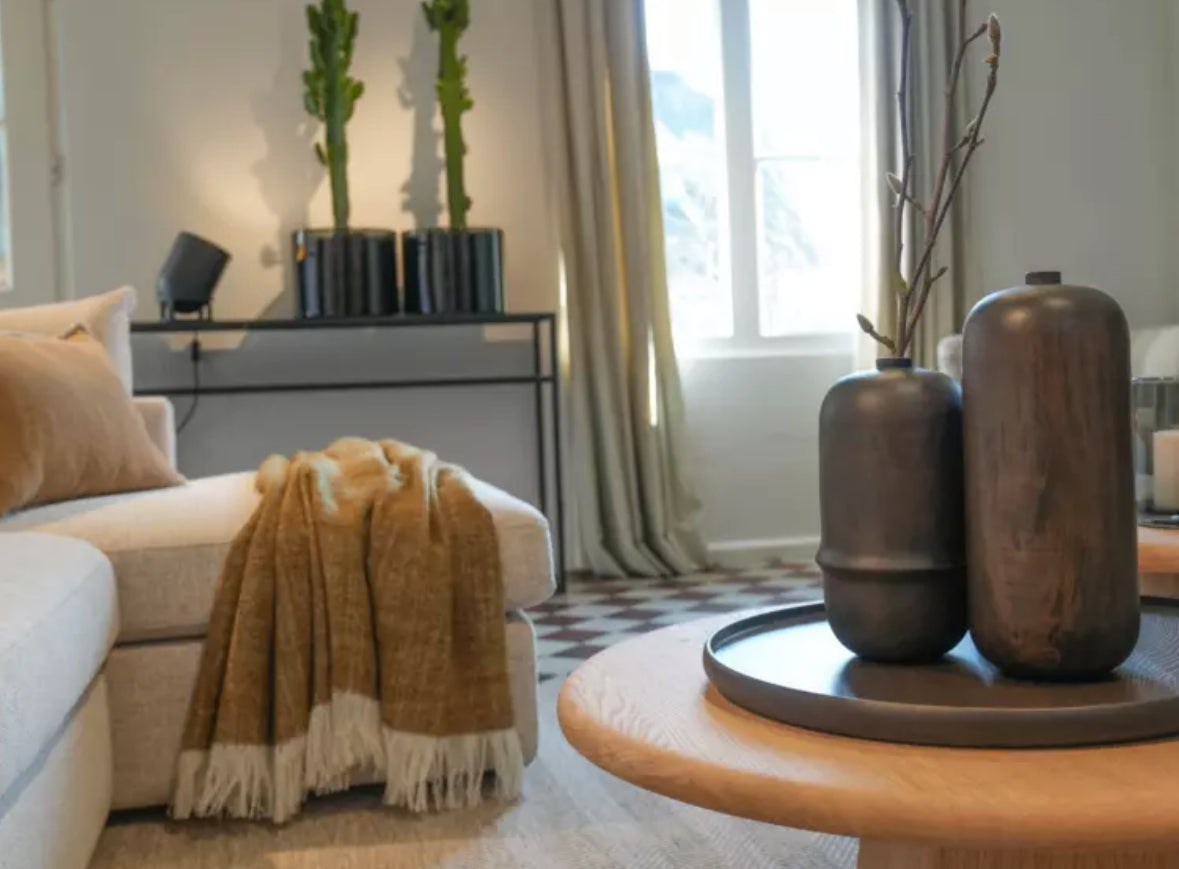 Deze plaid ‘Oasis’ in camel kleur kan in 2-4 weken geleverd worden.