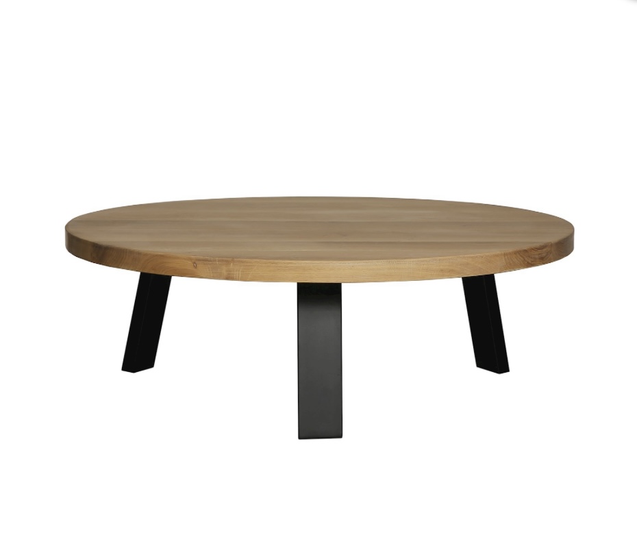 Scapa Home round coffee table 'Loxy' with black steel base and natural oak top 100 dia x 34 h cm