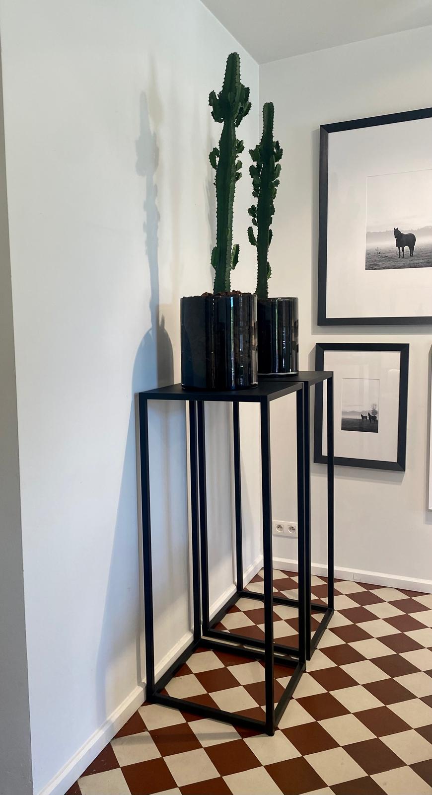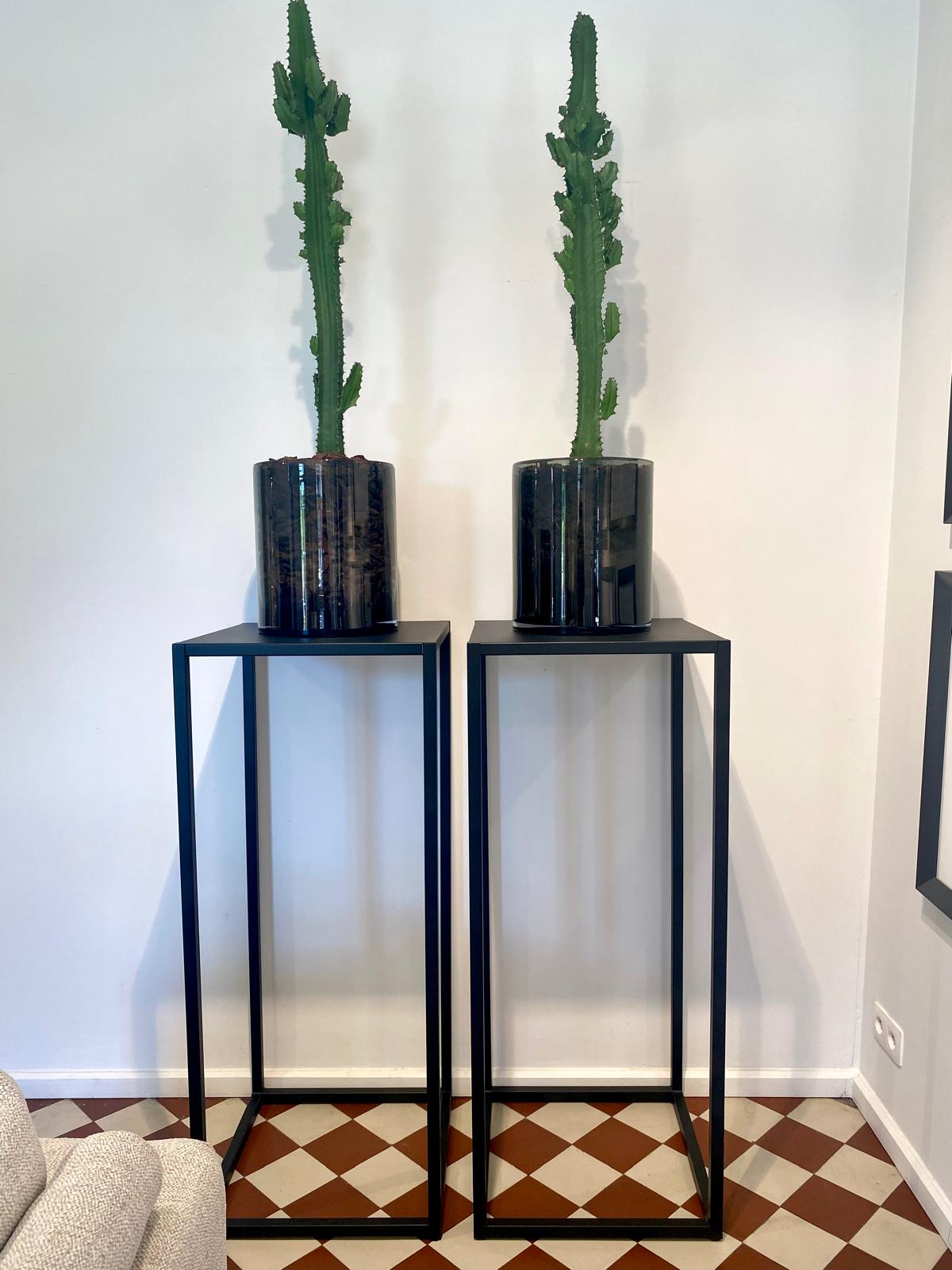 Deze prachtige ‘Cubo’ zuil, of sokkel van Scapa Home heeft een klassieke kubistische vorm; een hoekig metalen frame met strakke, minimale lijnen. Hij is gemaakt van zwart gepoedercoat metaal. Door z’n lineaire vormgeving past hij in ieder interieur en is hij onder andere mooi solitair te plaatsen met je mooiste kunst object of een van onze prachtige kunstwerken van Modern Shapes Editions. Hij doet het ook erg goed met een mooie vaas uit onze exclusieve vazen collectie. De ‘Cubo’ zuil is te krijgen in 2 verschillende afmetingen. Dit hogere model is 50cm lang x 50cm breed x 120cm hoog. Het kleinere model sokkel vind je hier.