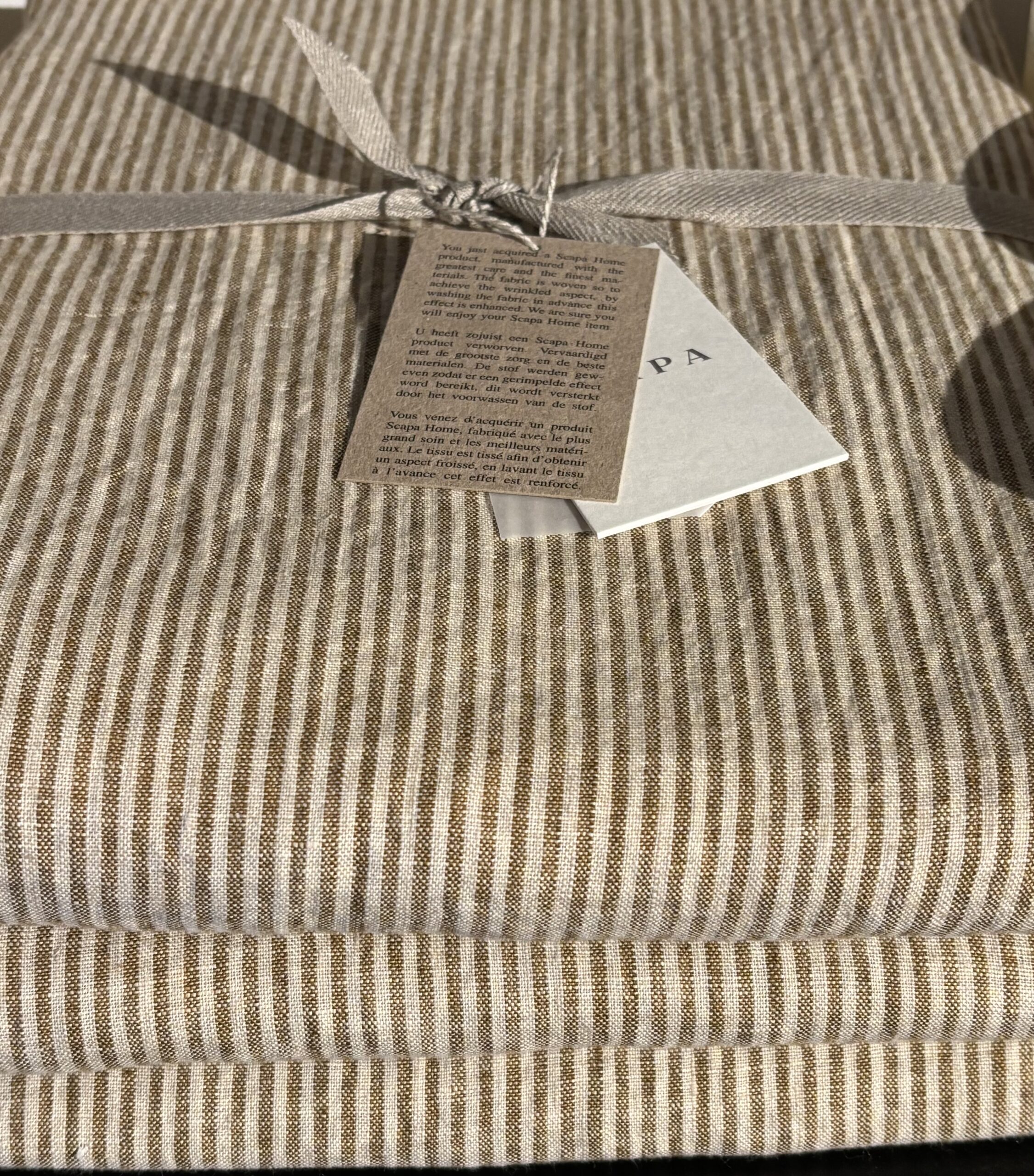 Een klassiek en stijlvol streepje in zand met bruin voor de deze mooie kwaliteit 100% Belgisch linnen placemats doet het altijd goed. In deze zand met bruine streep zijn tevens bijpassende tafellakens en servetten verkrijgbaar. Leuk voor je ontbijttafel en buiten op het terras en prachtig met het Scapa Home Peneda’ servies en ‘Grigio’ bestek. Tijdloos mooie placemats van Scapa Home waar je er heel lang plezier van zal hebben! Deze placemats zijn ook verkrijgbaar in een olijfgroen en in een jeansblauw streepje. De afmetingen van deze placemat is 53 x 40 cm.