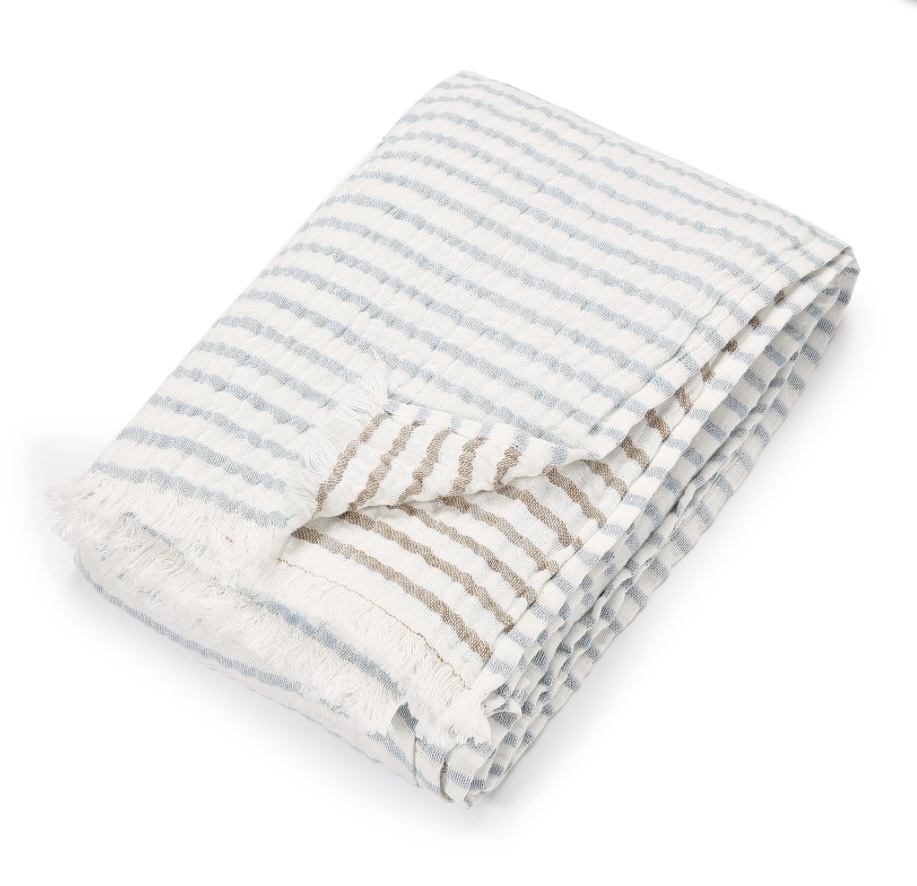 Deze servet ‘Filo’ in off-white met aqua wordt per set van 6 stuks verkocht.