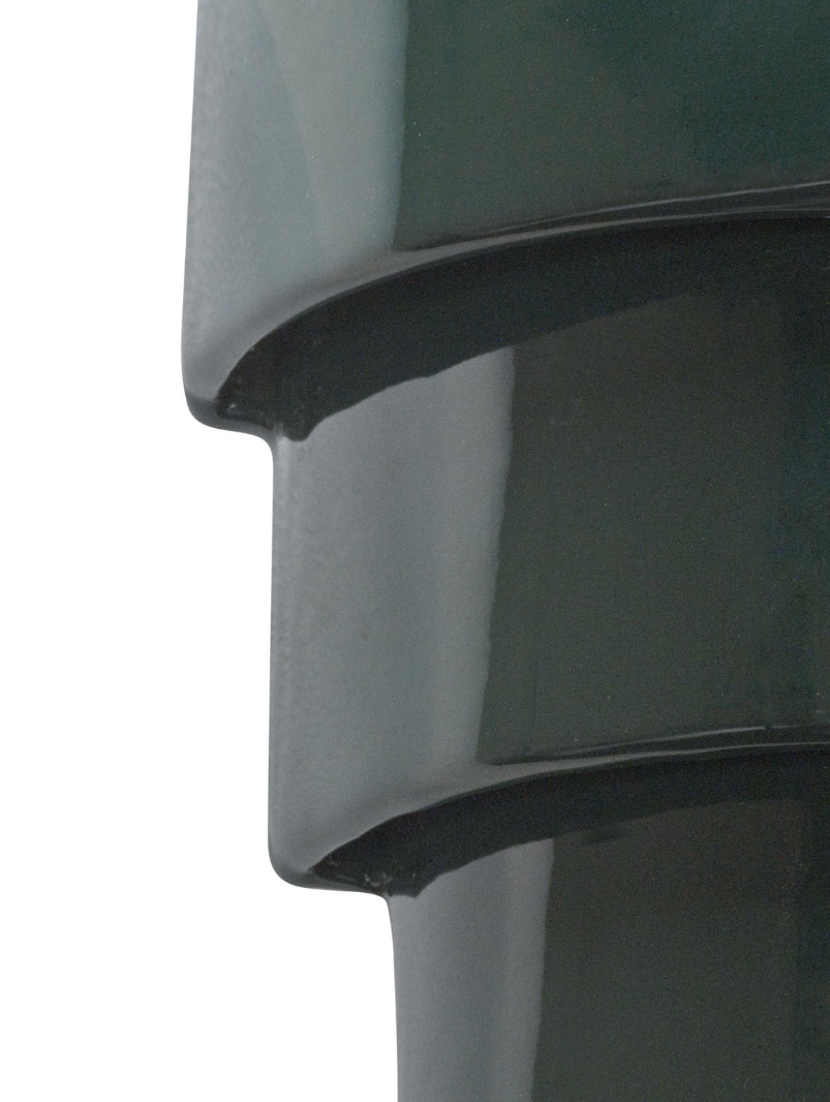 Keramische wandlamp ‘Jim’ in flessengroene kleur komt uit de populaire Terres de Rêves serie van de Belgische keramiste Anita Le Grelle, in samenwerking met Serax. De collectie omvat elegant aardewerk, waaronder deze populaire wandlampen opgebouwd uit lagen klei met zachte rondingen, die geïnspireerd zijn op een een zanderig droomlandschap. Na de lampen Louis, Jack en Pierre – vernoemd naar haar zonen – volgen nu Jim en James. Jim en James hebben sobere cilindervormen met een subtiel lichtspel. De afmetingen van deze wandlamp ‘Jim’ zijn: 21 cm breed x 13 cm diep x 23 cm hoog. De lamp fitting is G9 met een max wattage van 5 en een max voltage van 240 volt.