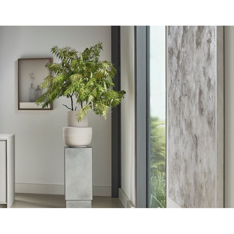 Deze royale door Piet Boon voor Serax ontworpen aardewerken vaas ‘Volume’ S is zeer decoratief. Het design en aardse kleurenpalet werd geïnspireerd op schilderijen van de Italiaanse kunstenaar Giorgio Morandi. Hij kan mooi gestyled worden met een schaal uit dezelfde ‘Volumes’ serie. De afmetingen van deze vaas zijn 25 cm dia x 31 cm hoog.