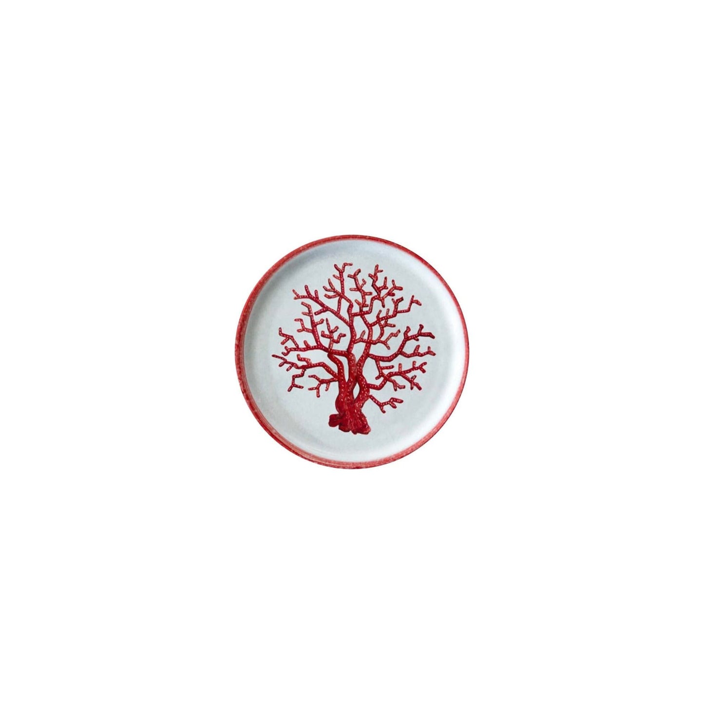 Deze prachtige handgemaakte bordenset bestaat uit 6 grote platte borden. Wat de set zo bijzonder maakt is de imperfectie van het ambachtelijk gemaakte majolica porselein met het onregelmatige oppervlak en de handbeschilderde afbeelding van koraal erop. Geen 2 borden zijn hierdoor 100 % identiek. De borden zijn gebroken wit met koraal rode beschildering en schitterend te combineren met ons glanzend diep rode Arcucci Ceramics "Materia" servies.