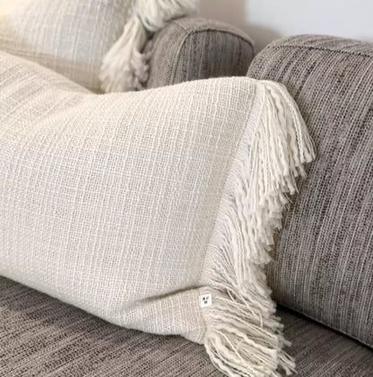 Langwerpig sierkussen 'Zadar' van Scapa Home in kalkwit heeft een luxueuze structuur in een mooie wol/acryl kwaliteit. Dit sierkussen heeft een afmeting van 40cm x 60cm en is een luxe accessoire voor zowel het bed als de bank. De franjes aan weerszijden in dezelfde kleur maken het kussen heel speciaal maar laat zich toch makkelijk combineren met andere sierkussens van Scapa Home zoals de 'Gilford', 'Aberdeen' serie of de 'Antrim'.