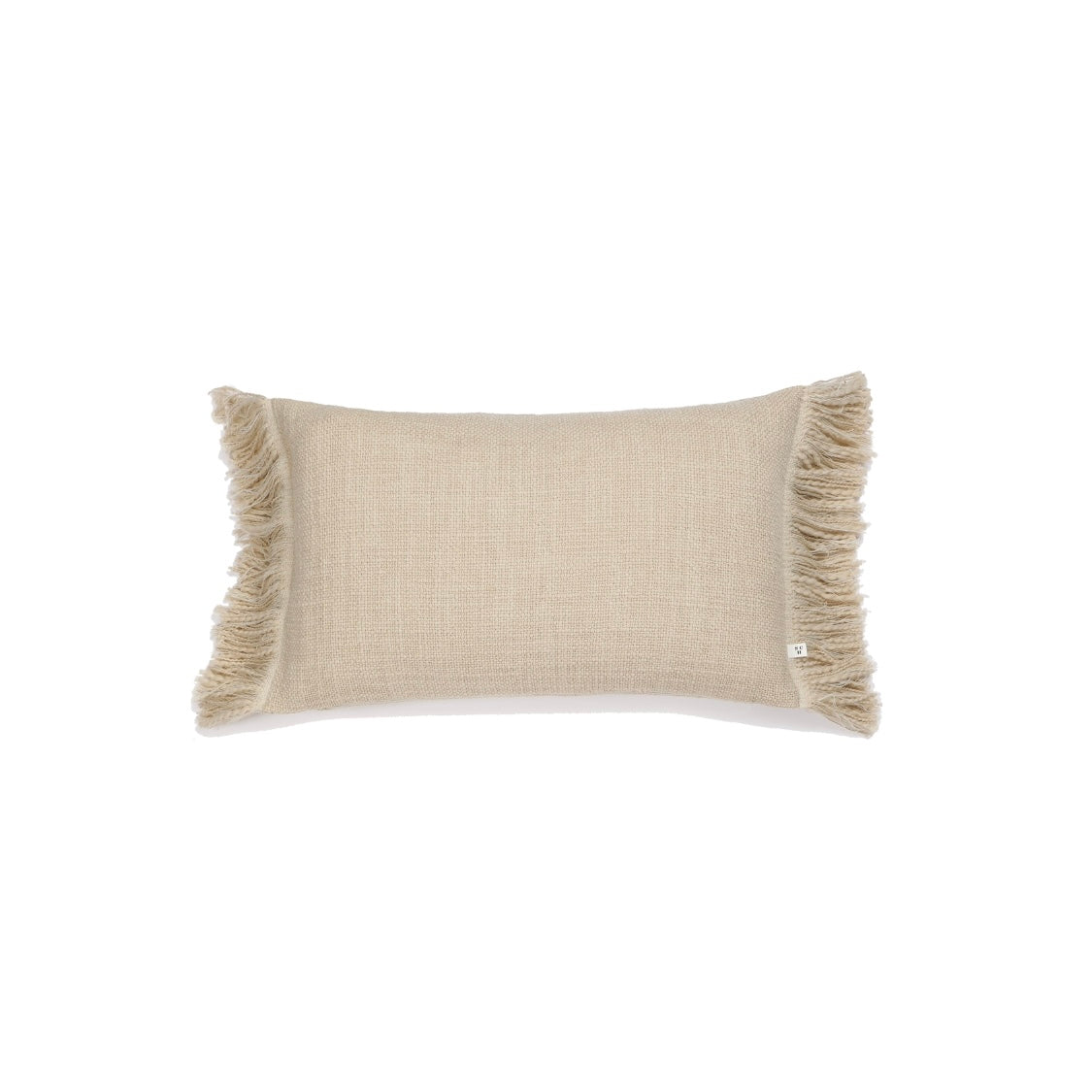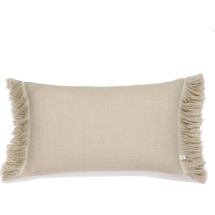 Langwerpig sierkussen 'Zadar' van Scapa Home in zand heeft een luxueuze structuur in een mooie wol/acryl kwaliteit. Dit sierkussen heeft een afmeting van 40cm x 60cm en is een luxe accessoire voor zowel het bed als de bank. De franjes aan weerszijden in dezelfde kleur maken het kussen heel speciaal maar laat zich toch makkelijk combineren met andere sierkussens van Scapa Home zoals de 'Gilford' of de 'Antrim' serie.