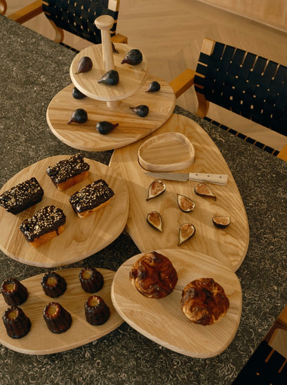 Een bijzonder ontworpen cake stand van blank essenhout van de wereldberoemde ontwerpster Kelly Wearstler. Hij kan gebruikt worden op al je zoete en hartige lekkernijen op te etaleren. De exclusieve cake stand is onderdeel van de door haar speciaal voor Serax ontworpen 'Dune' serie. De houten 'Dune' accessoires benadrukken de unieke eigenschappen die inherent zijn aan essenhout. De cake stands en dienbladen zijn organisch van vorm, speels van aard maar ook functioneel in gebruik. Deze cake stand staat echt te pronken op je tafel of barblad. Kijk ook bij serviezen en bestek.voor andere items uit de 'Dune' serie ontworpen door Kelly Wearstler. Er is ook een fraaie bijpassende glazen stolp met essenhouten knop bij om je lekkernijen langer vers te houden.
