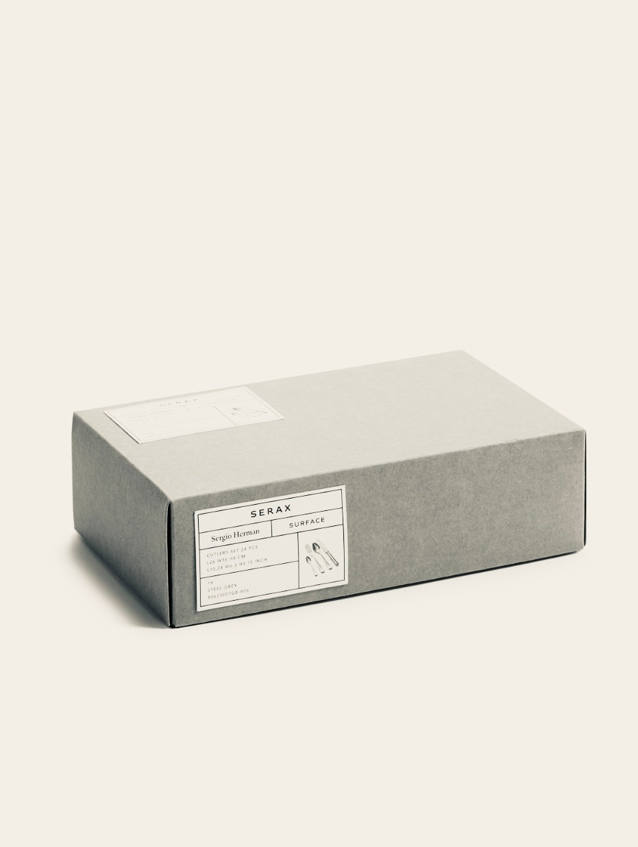 De levertijd van deze bestekset 'Surface' is ongeveer 2 weken en wordt in een fraaie Serax giftdoos bezorgd.