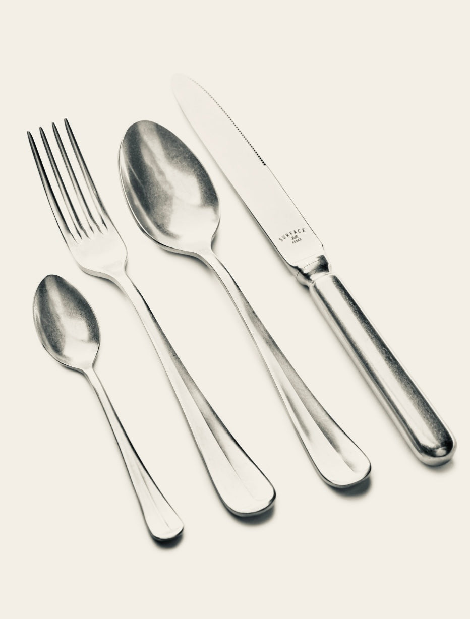 Het Serax Surface bestek by Sergio Herman heeft een klassieke, maar tijdloze uitstraling en een verweerde robuuste look. De vormgeving van dit luxe bestek is gebaseerd op klassiek frans horeca bestek.